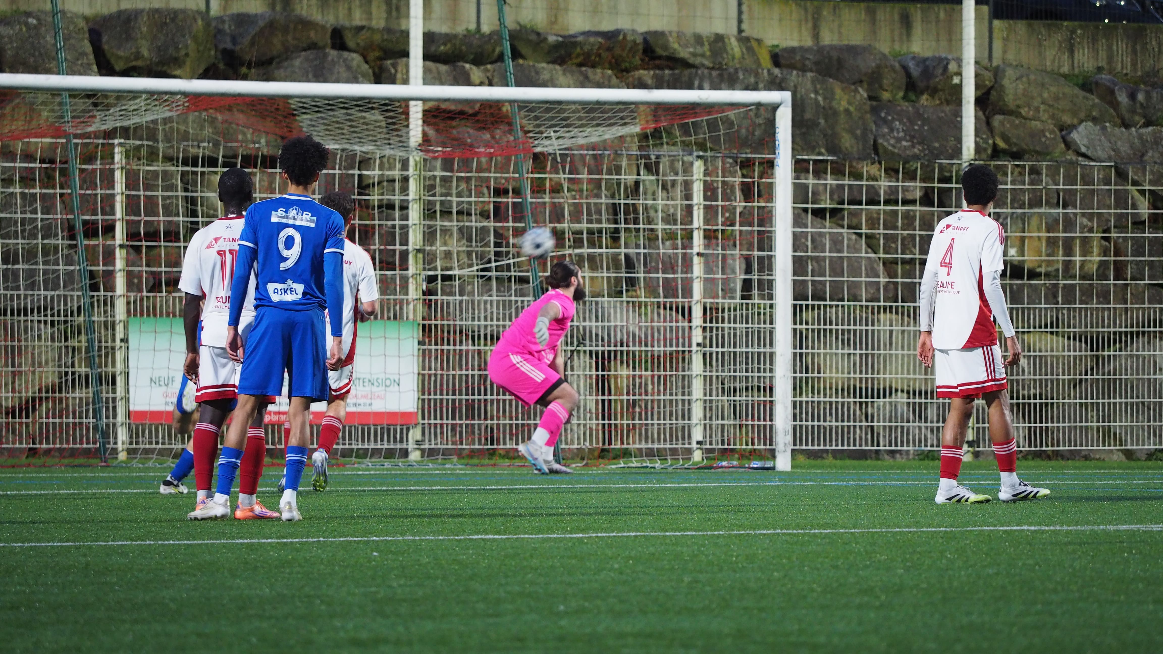 Nicolas Pellen (81') avait à charge de s'y coller pour le 4-2, il mit aussi une puissance suffisante pour qu'elle soit hors de portée de Pierre Larnicol, qui avait vu juste sur le côté choisi (4-2, 81'). L'affaire semblait pliée, mais cinq minutes plus tard, comme en première mi-temps, les visiteurs n'abdiquaient décidément pas. Le crochet d'évitement, suivi d'une passe lumineuse de Sonny Léger, dans la course du capitaine, Tanguy Le Lec, ce dernier ne pouvait rater une telle opportunité (4-3, 86').