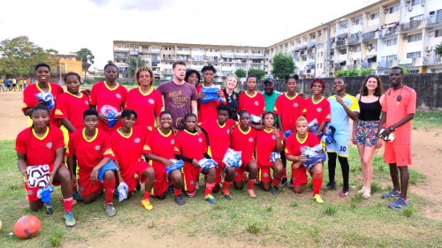Le 10/02/2023 à 06h28La présidente de l'Espoir Clohars-Fouesnant à la rencontre des joueuses du FC Inter d'Abidjan