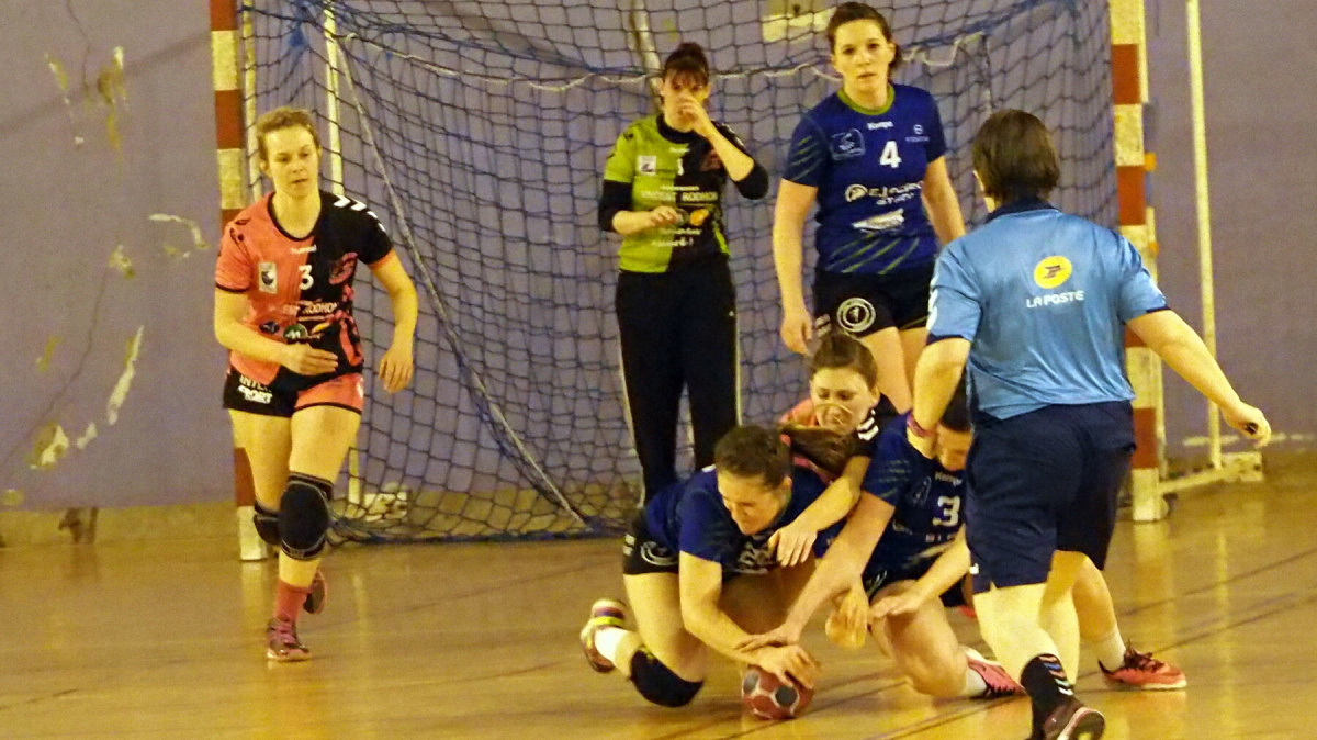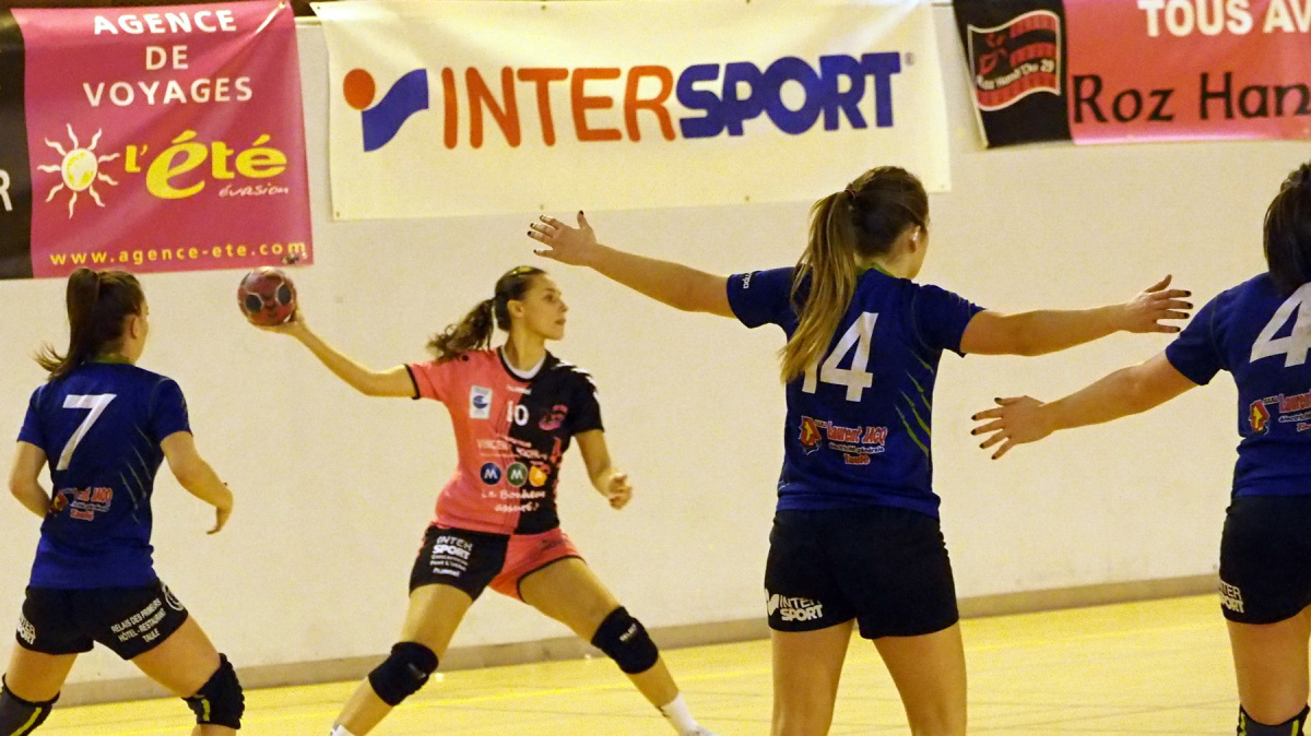 L'équipe de Mathieu Bourbigot et Tugdual Tanneau attendait ce match pour le croquer littéralement. L'adversaire paraissait d'un calibre supérieur. Cependant, dans sa salle arborée de couleurs roses et noires, l'équipe locale ne craint personne. Dans les yeux, dès l'entame de match, misant sur des contres-attaques pour faire craqueler le rideau défensif adverse, les locales ne perdaient pas le fil d'Ariane de ce match. A son aile, Noémie Bernard, premier match en N3F à 16 ans, faisait des prouesses. A l'opposé, la gardienne des Roz Hand Du 29, Christelle Diougant multipliait les arrêts pour tenir à flot l'équipe (9-10). Les Roz Hand Du 29 étaient performantes des deux côtés du terrain. Capables de porter le danger sur les deux ailes du jeu, elles freinaient l'ascension des visiteuses, et celle de Pauline Le Bihan, pourtant considérée comme une des meilleures joueuses de ce championnat. A la mi-temps, l'égalité fut parfaite (11-11).