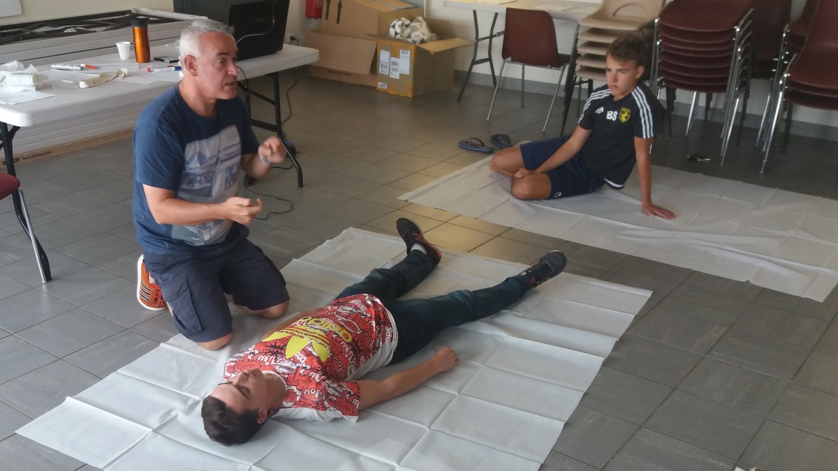 Neuf éducateurs et dirigeants du club ont suivi une formation de prévention aux premiers secours, le dimanche 13 août, au stade municipal de Penmarc'h. Les stagiaires viennent de tous les horizons (dirigeants, éducateurs jeunes, féminins et seniors) et permet d'anticiper d'éventuels soucis qui peuvent survenir sur les terrains le week-end et en semaine. Avec 310 licenciés et une pratique quotidienne (du lundi au dimanche), les risques d'accidents sont nombreux. La sécurité de l'ensemble des licenciés du club est une priorité. C'est Stéphane Diquelou, pompier à Quimper et formateur à la Croix Blanche qui a fourni l'enseignement. Cette formation va permettre d'améliorer la sécurité des licenciés qui viennent tous les jours au stade municipal. Les 9 nouveaux titulaires du diplôme viennent grossir le nombre d'éducateurs et dirigeants titulaires de formation aux premiers secours (une vingtaine). Les prénoms des "formés" : Cécilia (éducateur U 7 et féminin), Murielle (éducateur féminin), Valentin (éducateur U 17), Kylian (éducateur U 9), Frédéric (Vice-Président), Lydie (secrétaire), Solenn (dirigeante), Bastien (Responsable U 11).