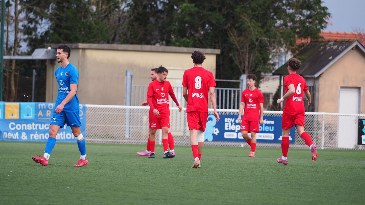 Légende: Le Stade Quimperlois (R3) a glissé en première période face au Stade Plabennécois (R1) annihilant toutes ses chances de passage en quart de finale de la coupe de Bretagne.
