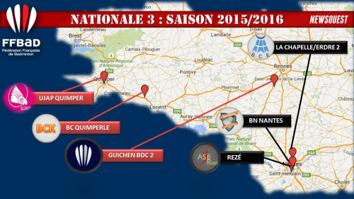 Le 19/06/2015 à 15h23BADMINTON : le calendrier Nationale 3 - Poule 7 - 2015/2016