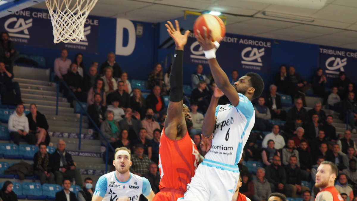Les 1586 spectateurs appréciaient ce spectacle complet. L'ardeur quimpéroise ne faiblissait pas, au contraire, elle avait même tendance à aller à hauteur des adversaires. Digué Diawara fondait l'avance visiteuse à un point (38-39, 17'), donnant un finish aux Béliers de Kemper, qui symboliquement, repassaient devant à la pause (43-42, 20')