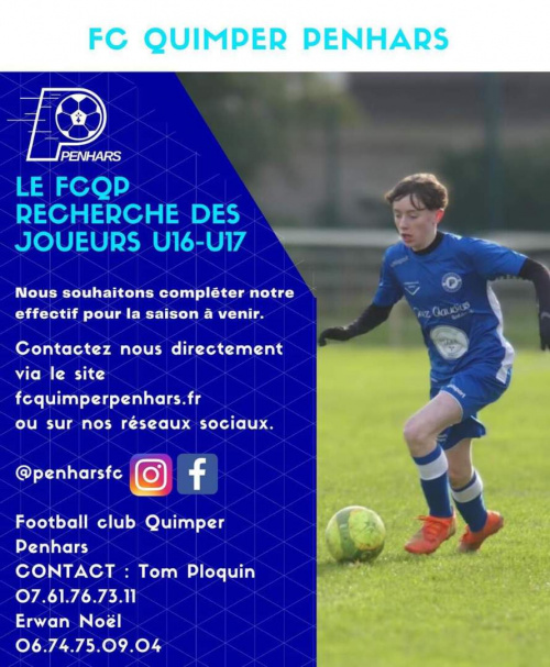 05/07/23 - 09h09Le FC Quimper Penhars recherche des joueurs en U16/U17